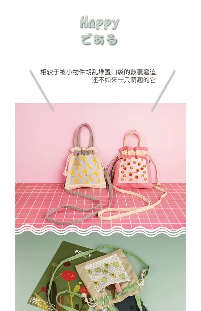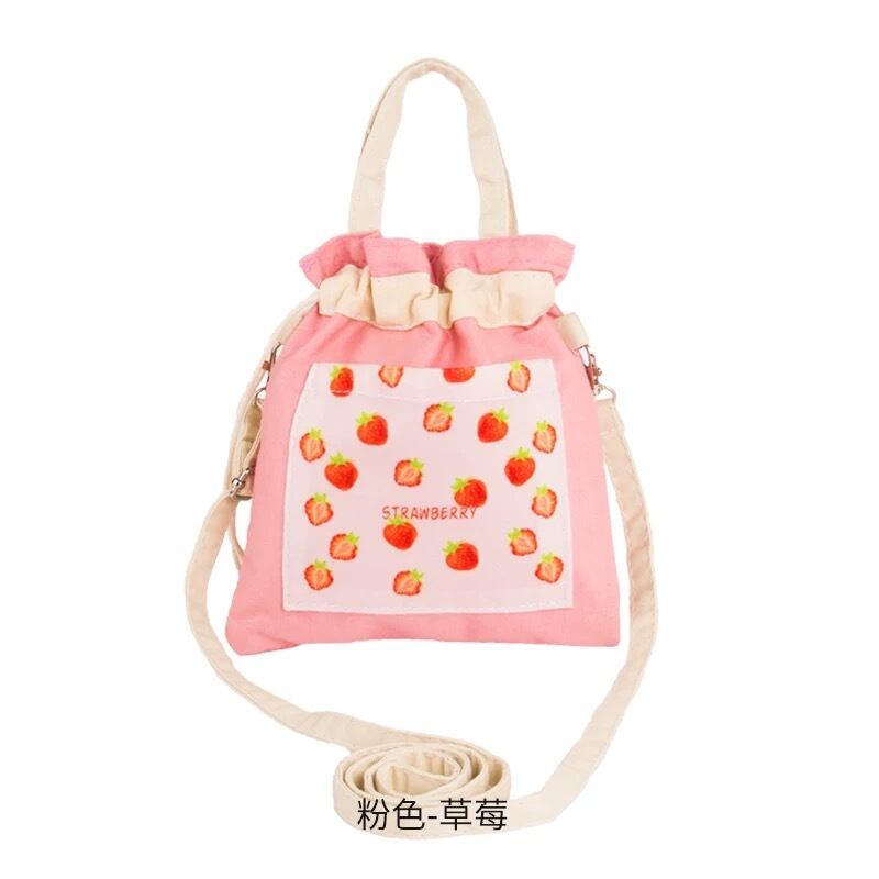 手に取るたびに笑顔になれる、いちご柄のショルダーバッグ。持つだけで気分が上がり、周囲の人にも元気を与えること間違いなし!