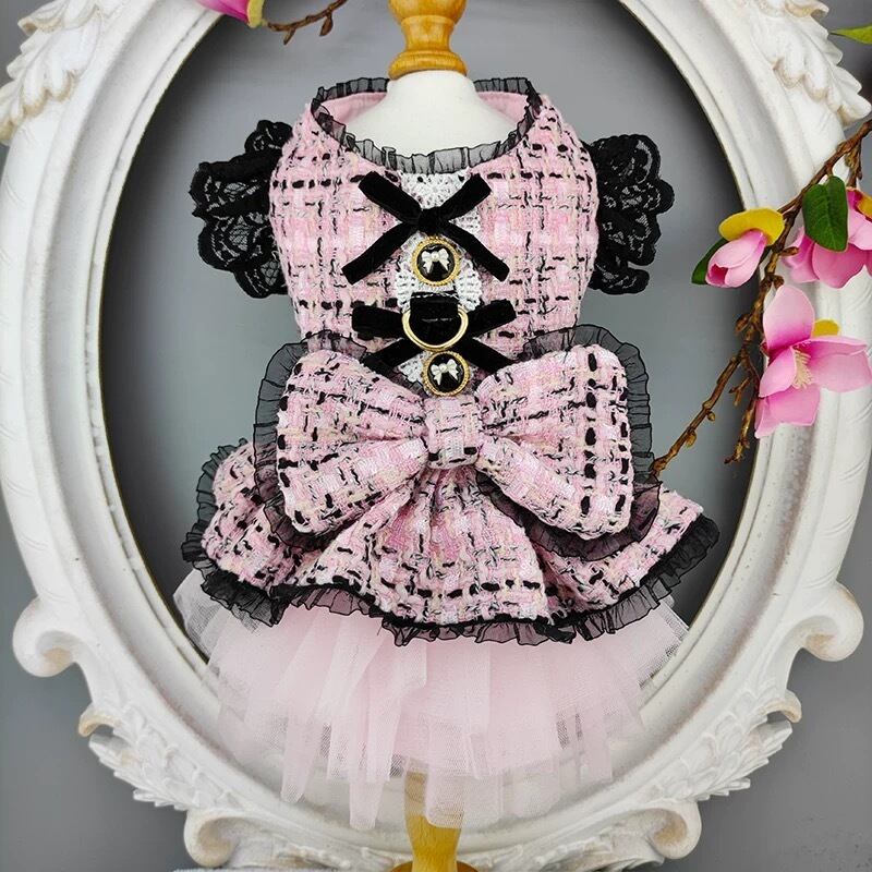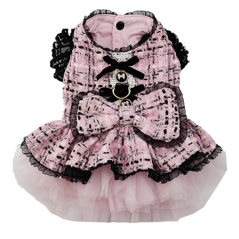 【取り寄せ】ピンクツイード柄フリルワンピース