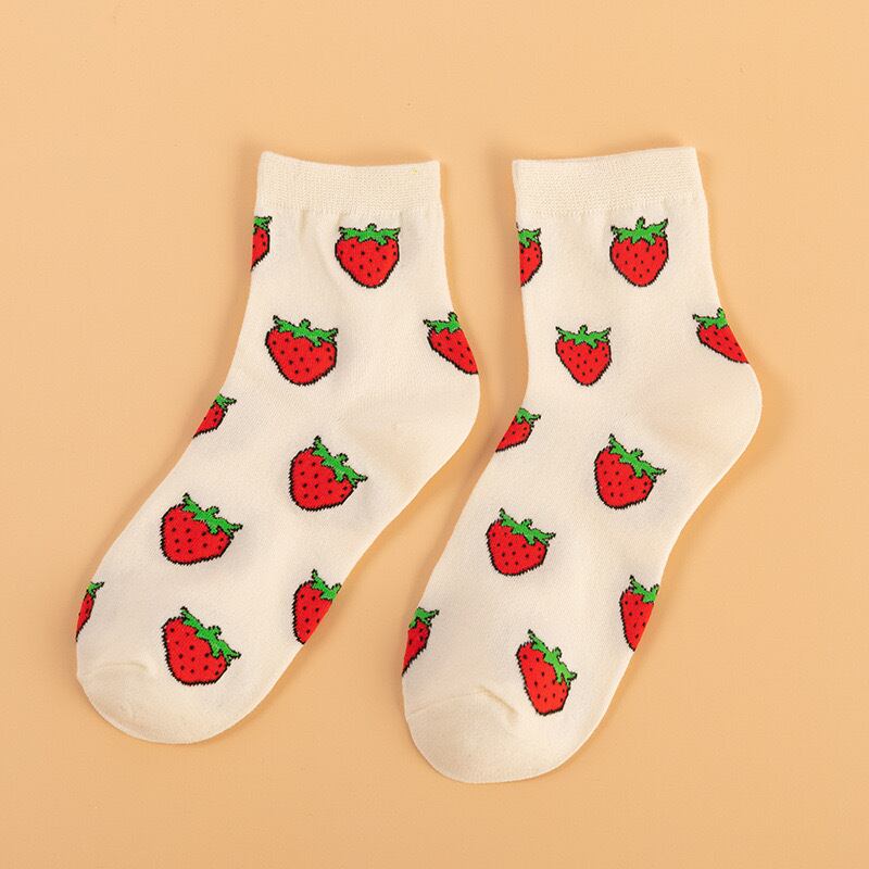 愛らしいいちご柄が、足元を華やかに彩ります。