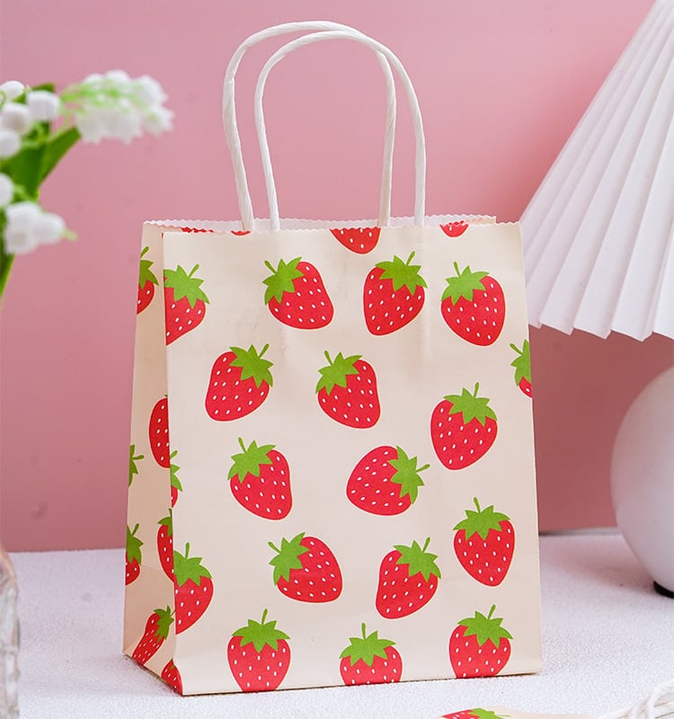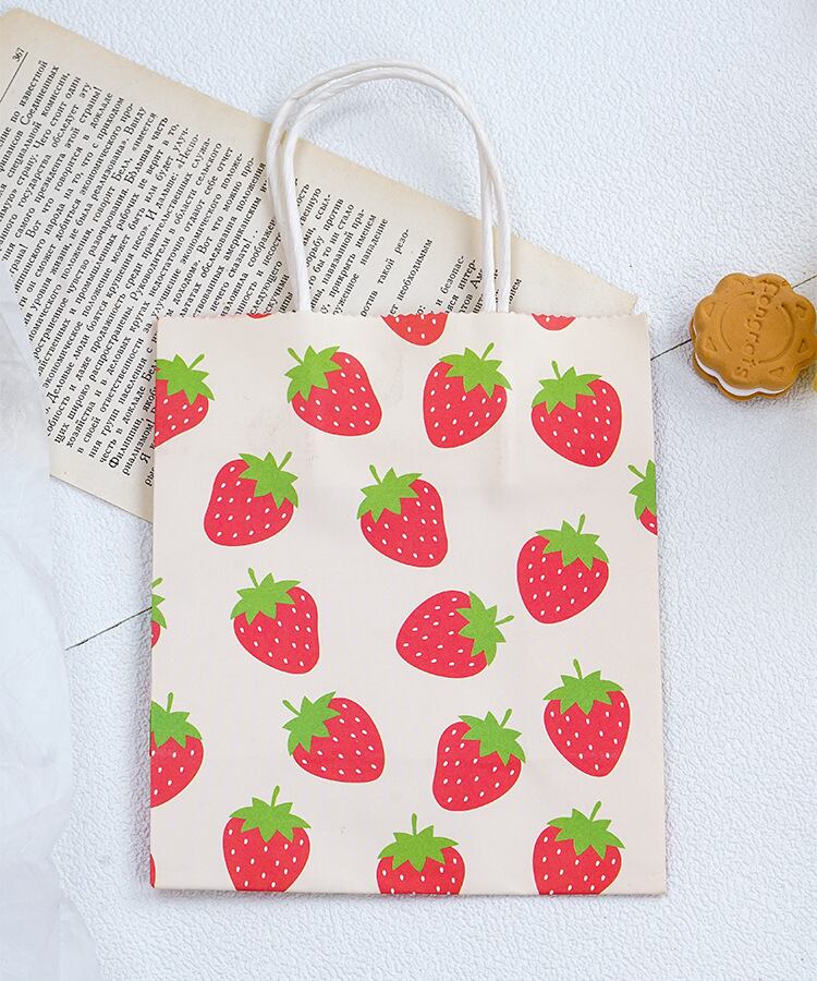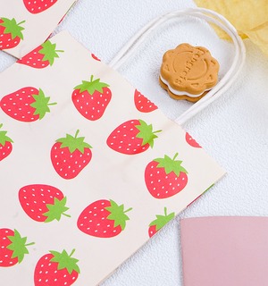 いちご柄 紙袋は、可愛らしいデザインが