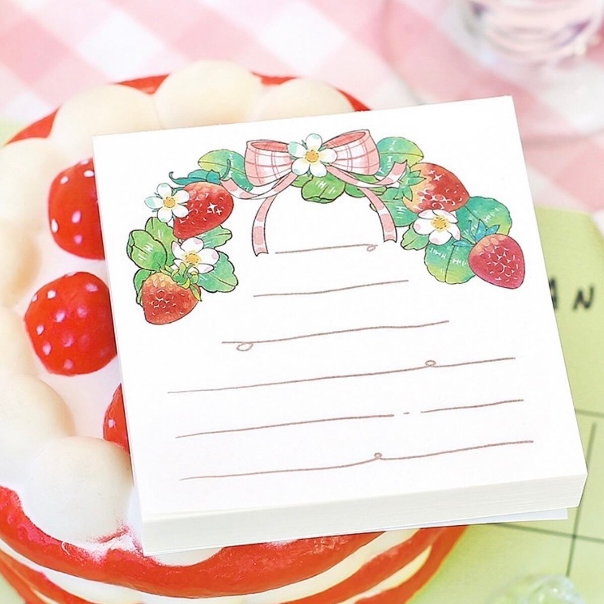 【予約商品】いちご柄 メモ帳 メモパッド 100枚 付箋