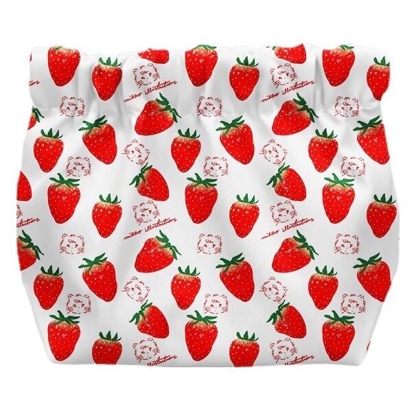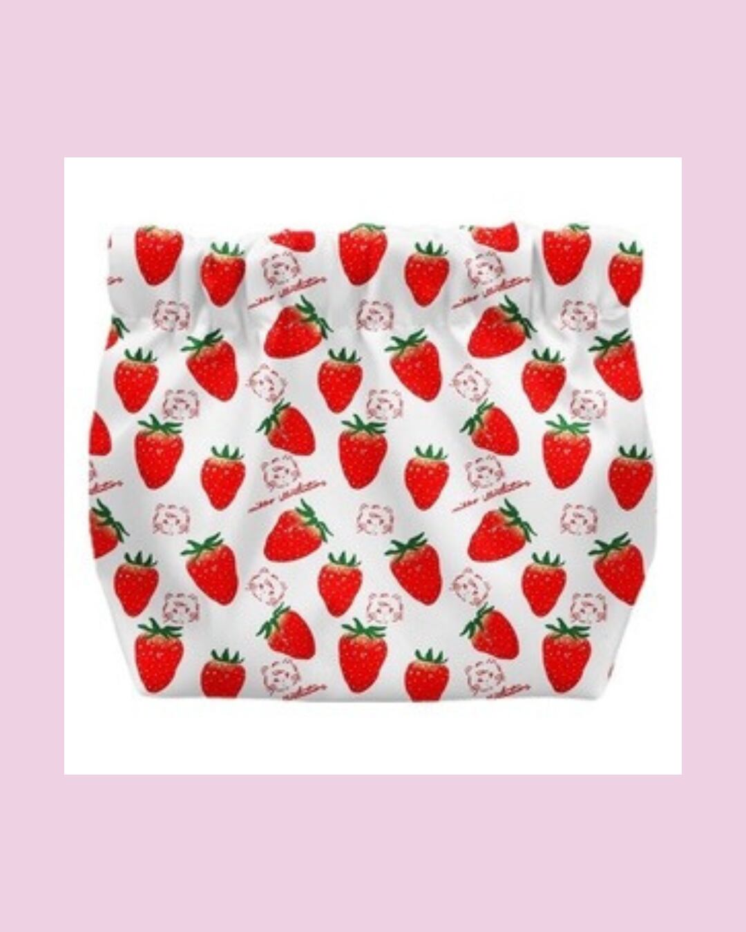 小さないちご柄がポーチ全体を覆い、見ているだけで幸せな気分にさせてくれます。