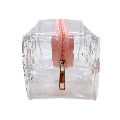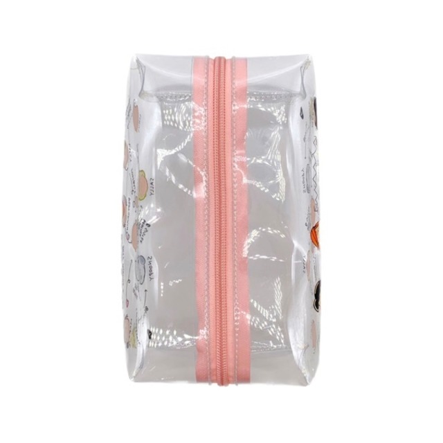 透明なビニール素材で中身が見えて、ポーチの中の小物が一目で取り出せるので