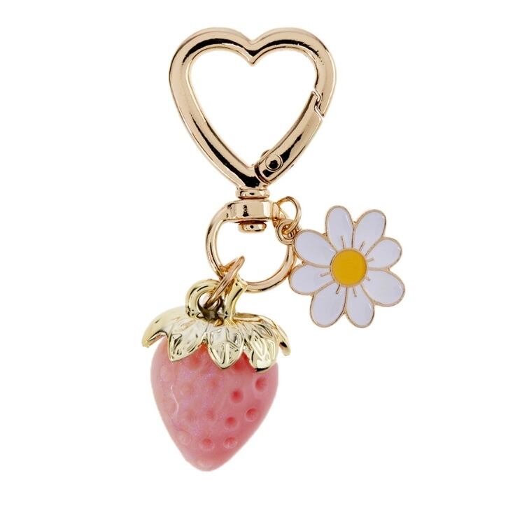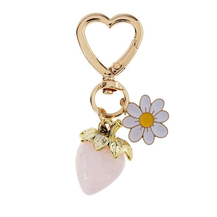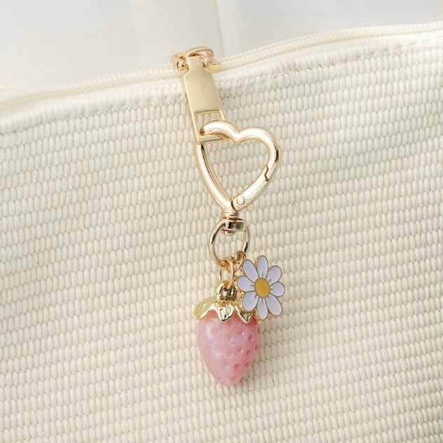 いちごのかわいいチャームがキュートなキーホルダーです。