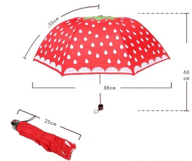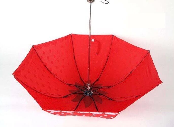 いちご型の可愛らしいデザインが特徴の折りたたみ傘。