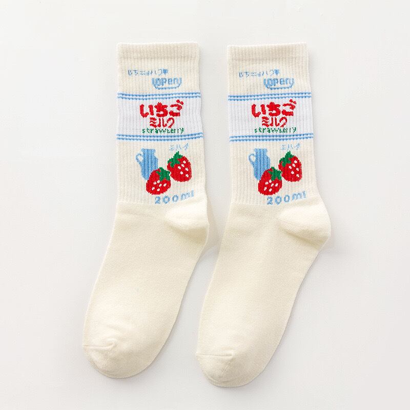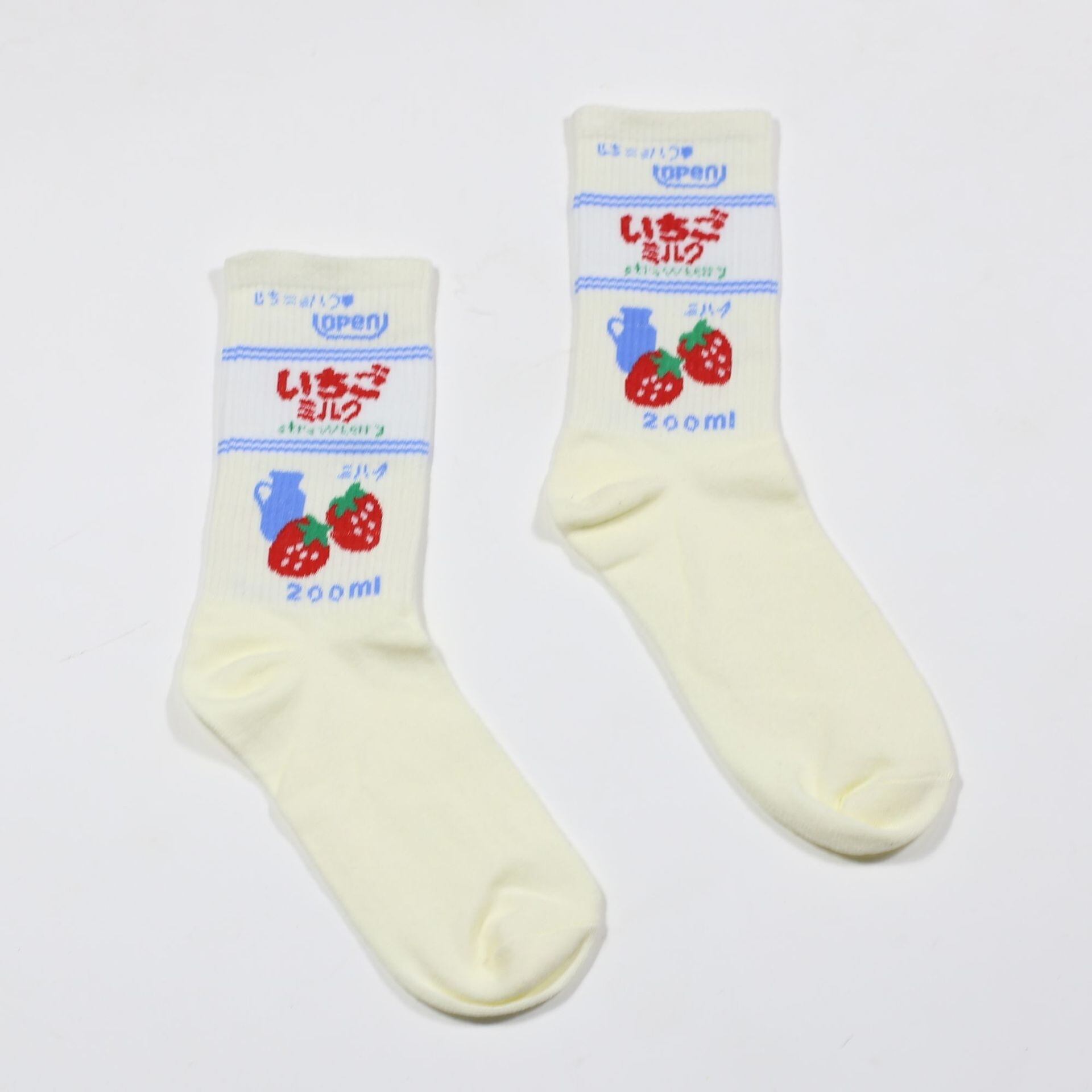 【お取り寄せ商品】22〜24cm ソックス いちご ミルク靴下