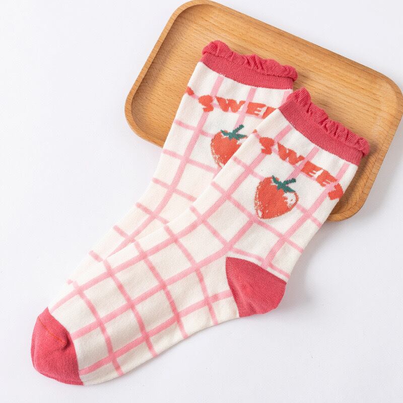 この可愛いイチゴが絵柄が足元を華やかに彩ります。