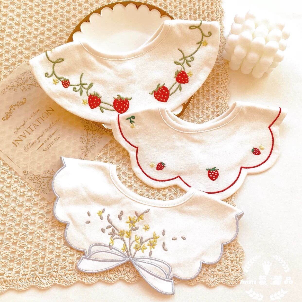 【お取り寄せ】3点セット 刺繍いちご柄 baby スタイ