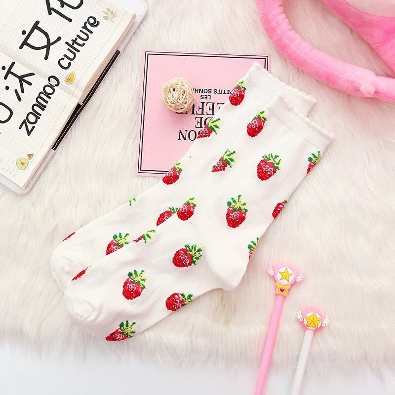 【お取り寄せ商品】22〜24cm 靴下 いちごソックス(PINK)