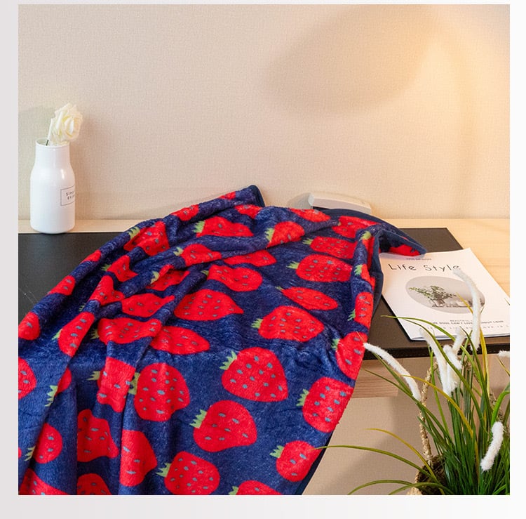 キュートないちご柄のひざ掛け毛布が登場。