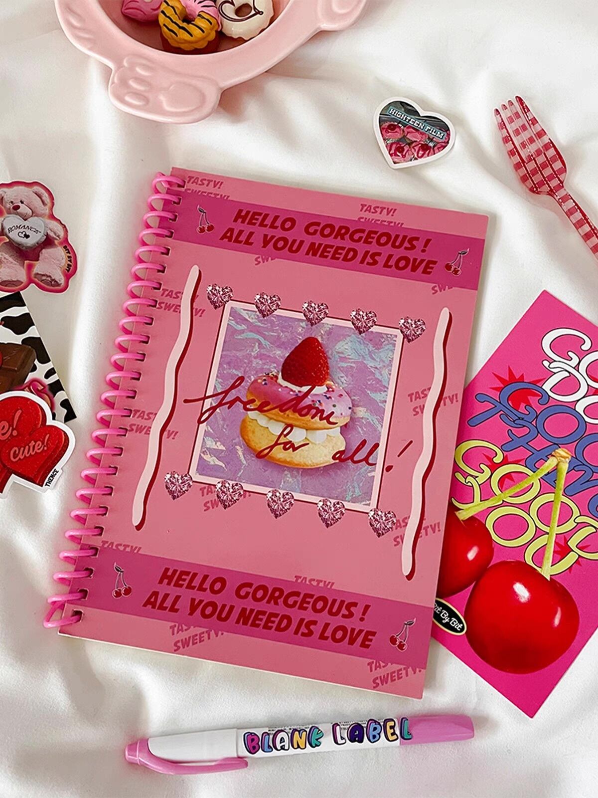 可愛らしいいちご柄が目を引くA5サイズのノート。