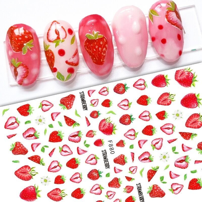 いちごのネイルシールは、季節感たっぷりでシーズンムードを盛り上げてくれます。デートやパーティー、日常使いにもぴったりなアイテムです。