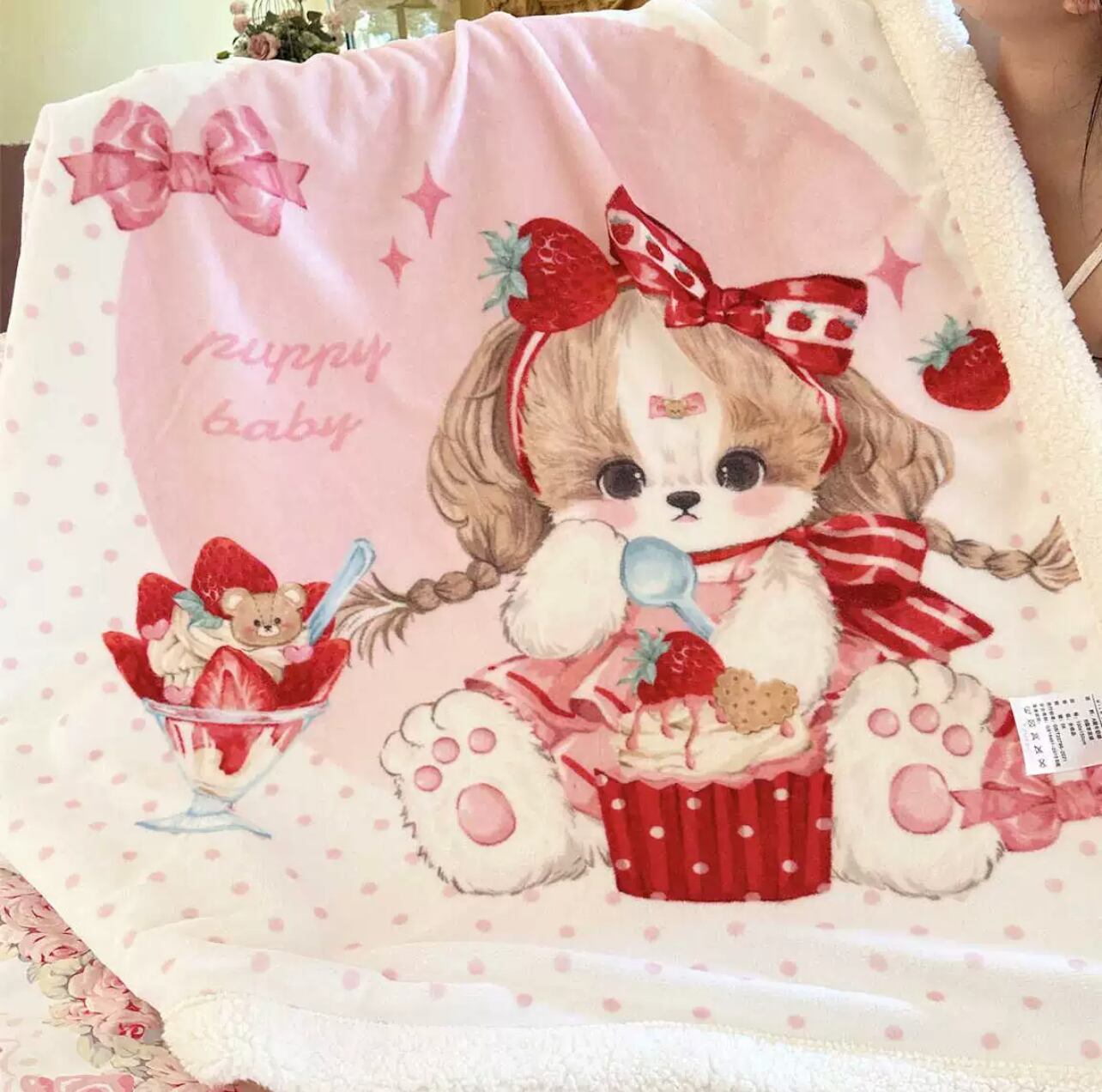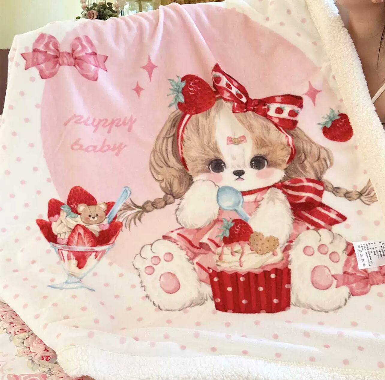 【お取り寄せ商品】【再入荷】2サイズいちご ひざ掛け ブランケット
