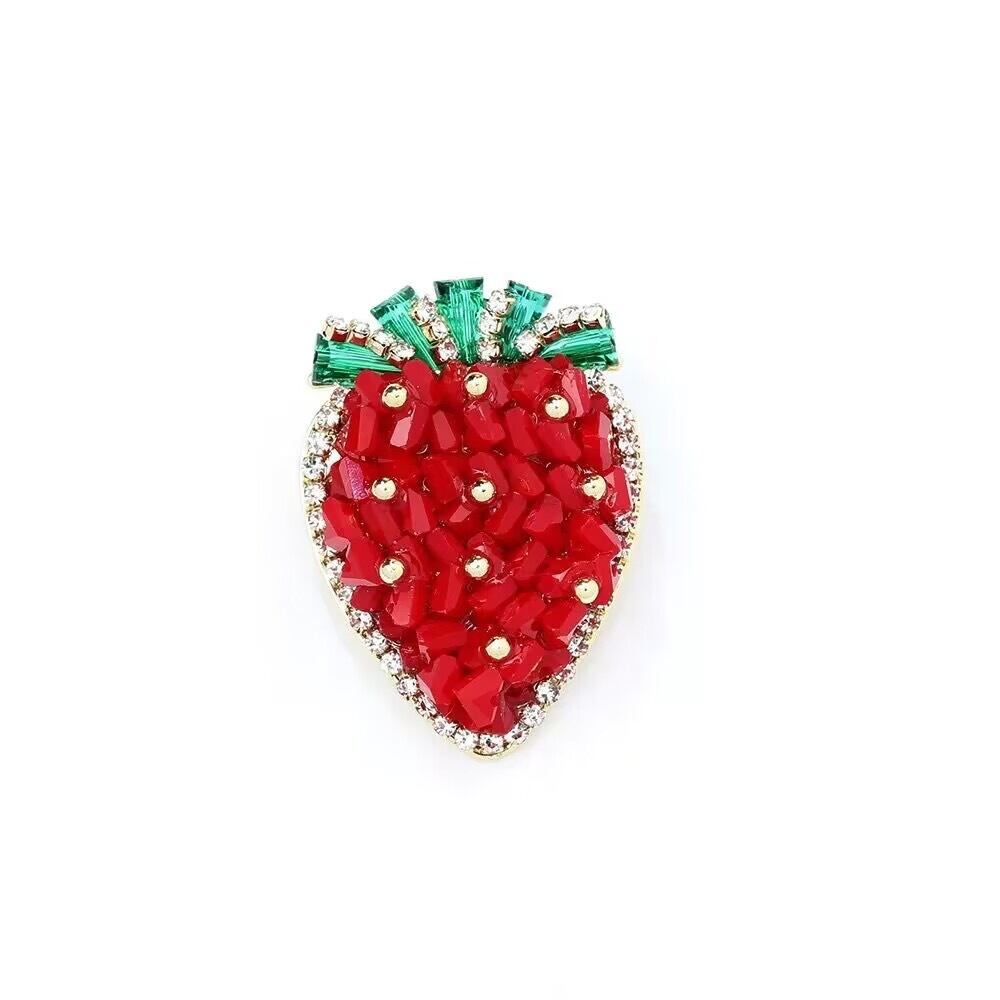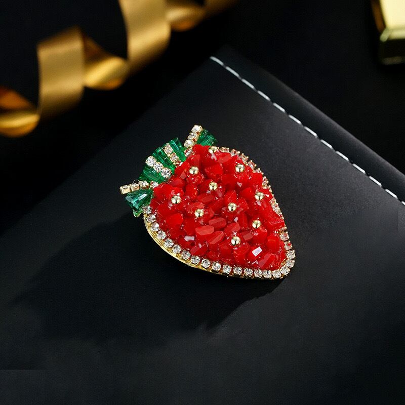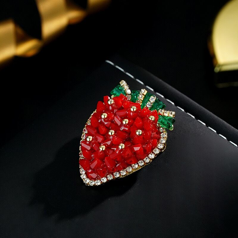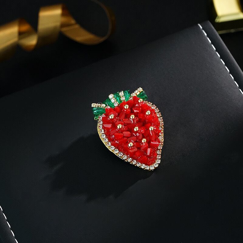 いちごの形をしたブローチには、キラキラ輝くので
