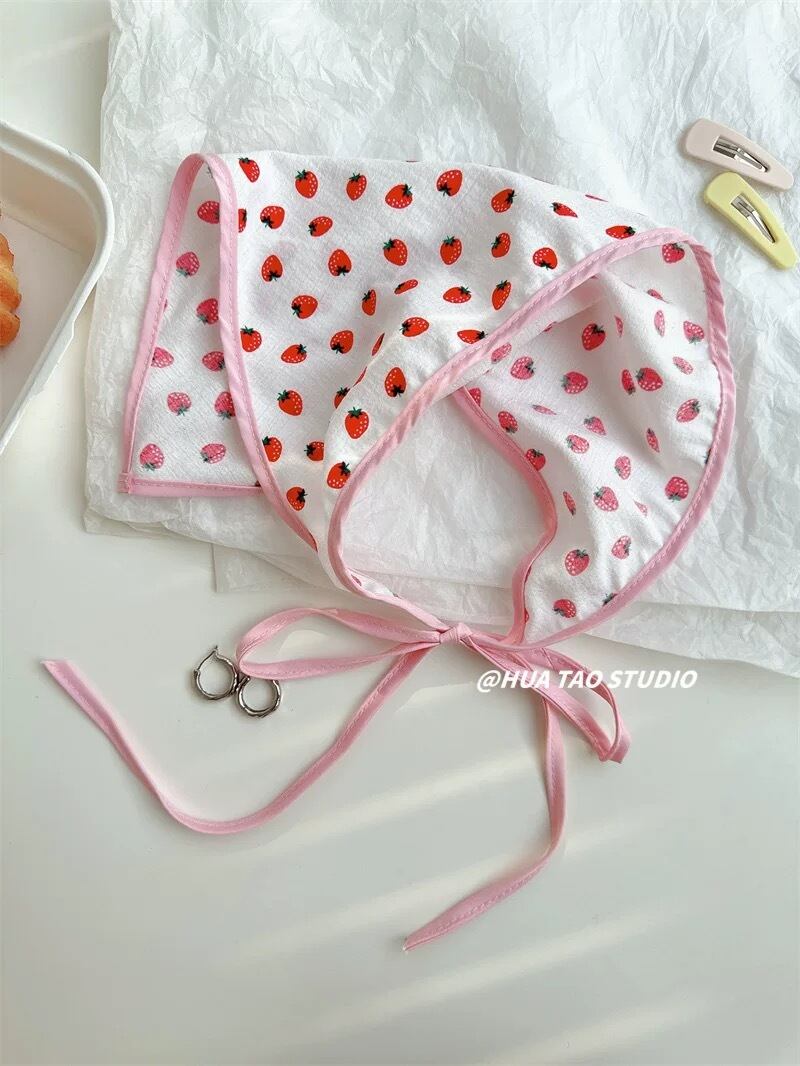 シンプルなホワイトのバブーシュカに、赤いいちご柄がポップな印象を与えるアイテム。