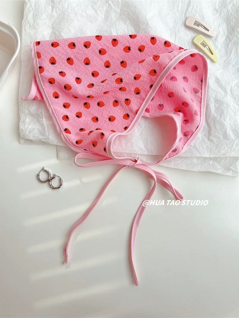 可愛らしいいちご柄が目を引くバブーシュカです。